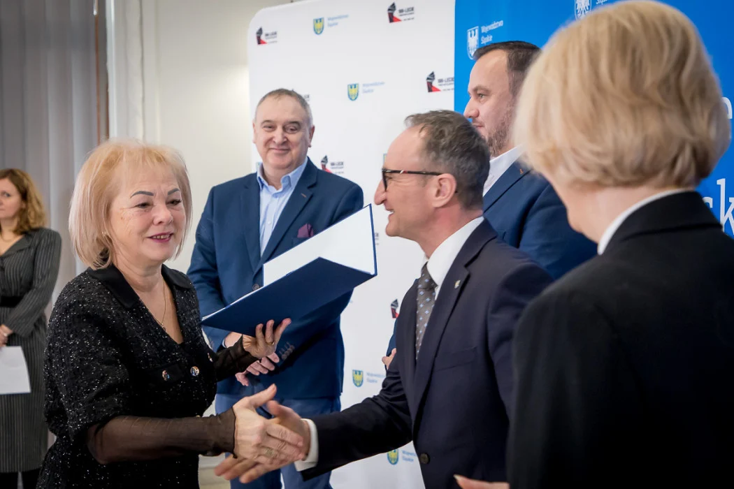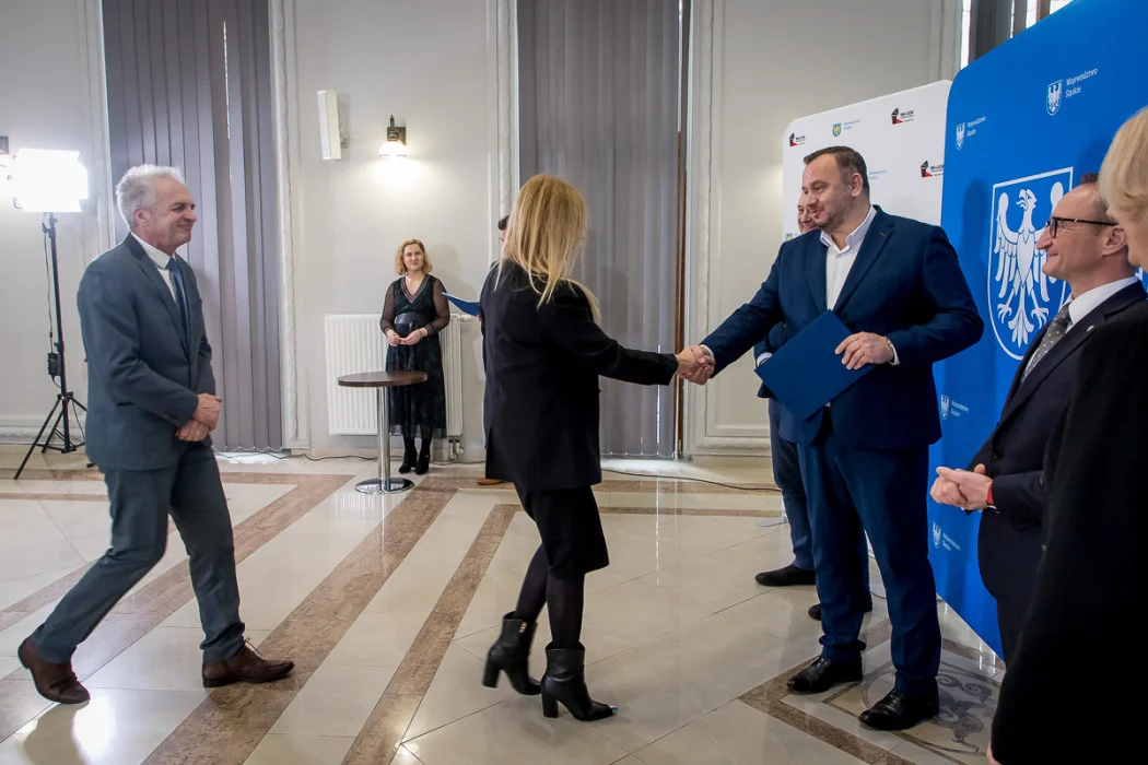 W uroczystym wręczeniu umów dla przedstawicieli Lokalnych Grup Działania uczestniczyli marszałek Jakub Chełstowski, członek Zarządu Województwa Śląskiego Grzegorz Boski oraz radni Sejmiku – Marek Bieniek i Iwona Jelonek.
