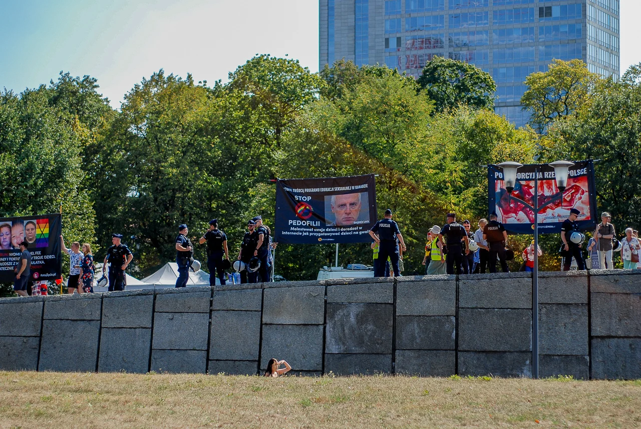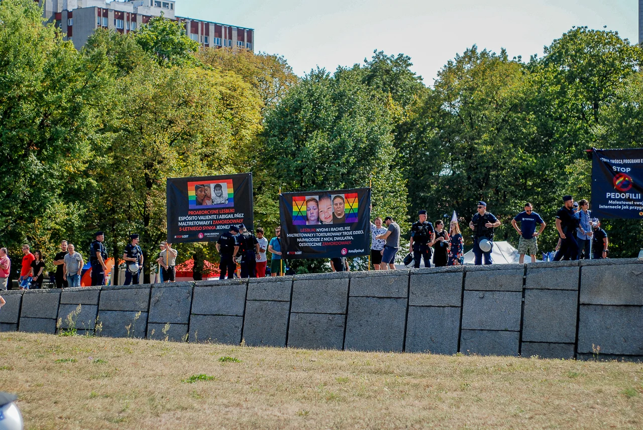 Przeciwników zgromadzenia było około 40, może 50. Emitowali z megafonów komunikaty przeciwko aborcji, w obronie życia poczętego i odmawiali różaniec.