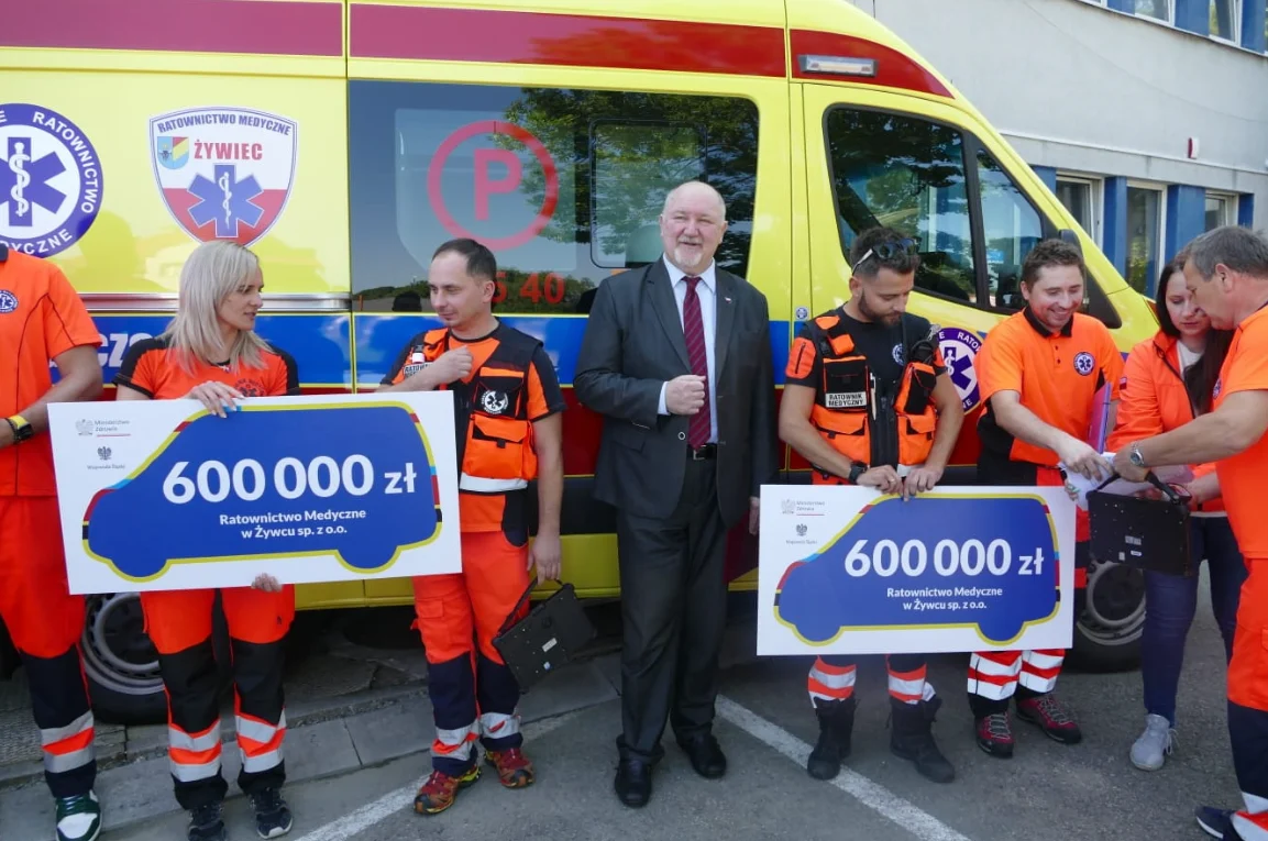 Czeki zostały wręczone również w siedzibie Ratownictwa Medycznego w Żywcu, gdzie wartość nowych ambulansów wynosi 1,2mln zł (2 x 600 tys. zł) oraz w Cieszyńskim Pogotowiu Ratunkowym, które otrzymało czek o wartości 600 tys. zł.