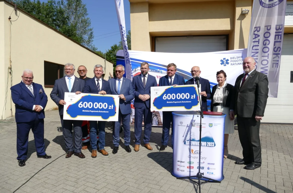 7 września w Bielskim Pogotowiu Ratunkowym odbyła się konferencja prasowa, podczas której wręczone zostały czeki na zakup ambulansów, których łączna wartość to 1,2 mln zł (2 x 600 tys. zł).