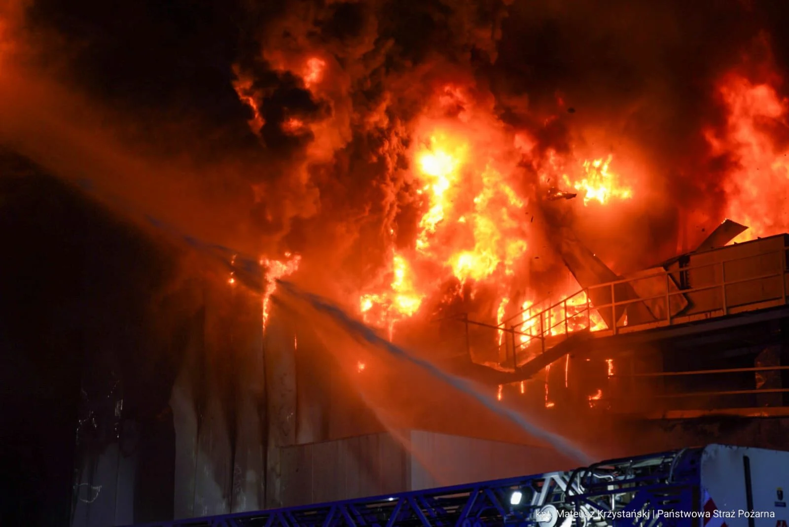 Gigantyczny pożar hali produkcyjnej w Sosnowcu – akcja PSP trwała całą noc [FOTO]