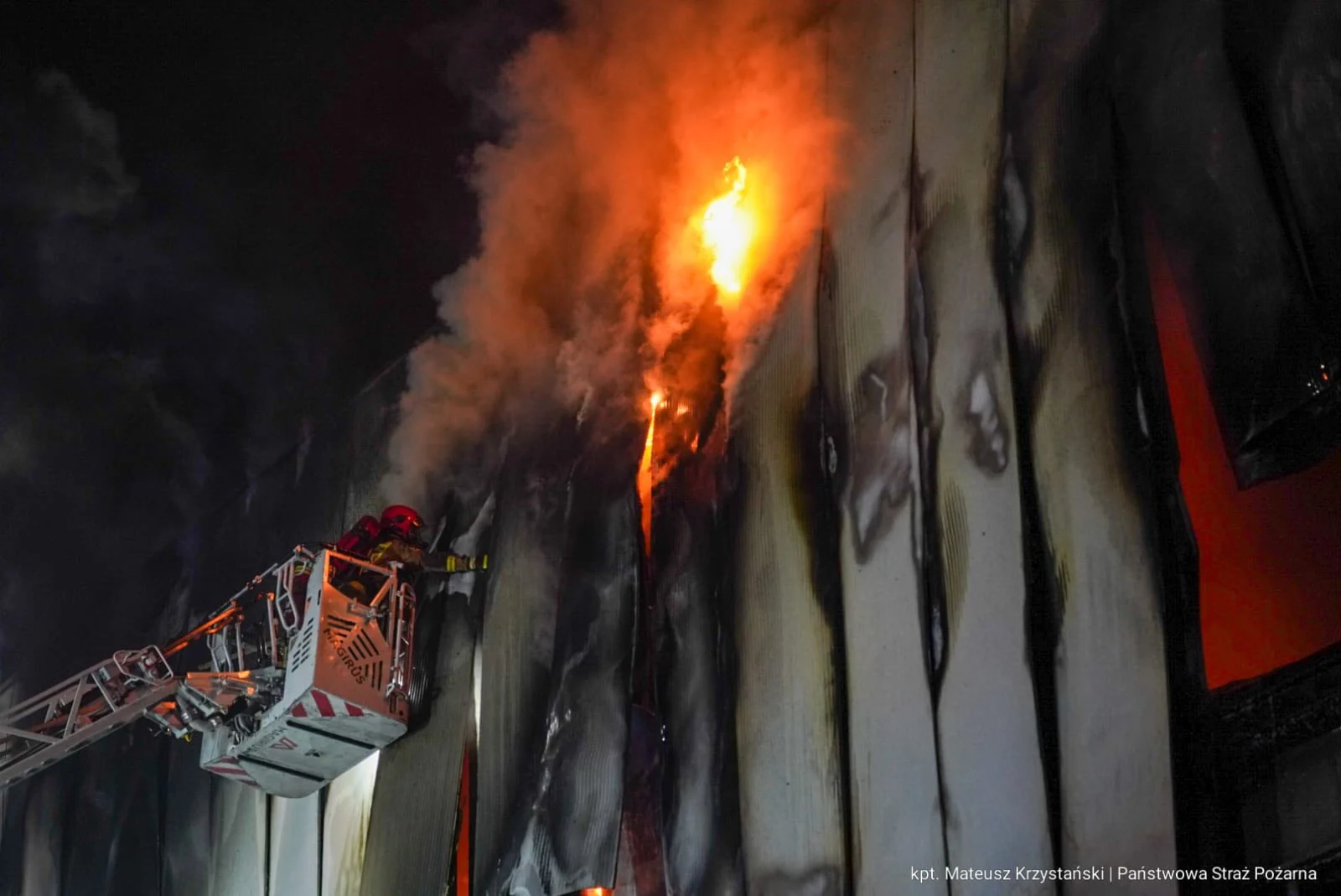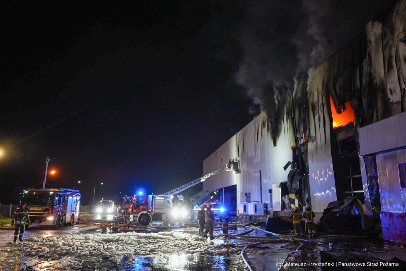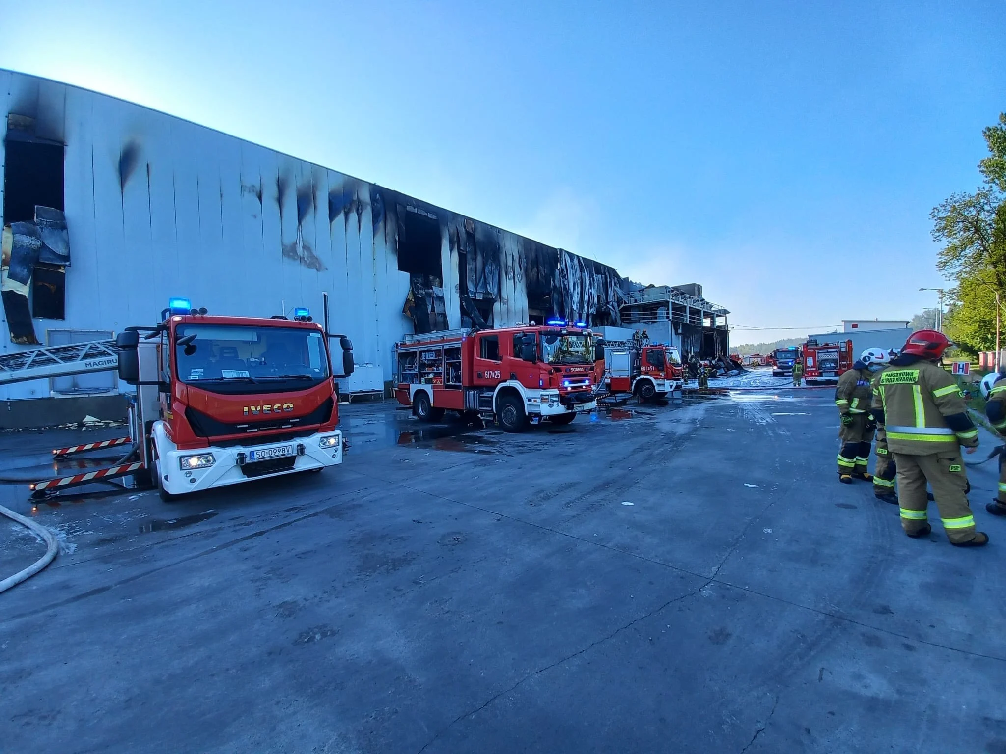 Pożar hali produkcyjnej w Sosnowcu – strażacy walczyli przez całą noc
