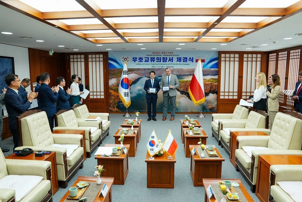 – Nie tylko zacieśniamy relacje dyplomatyczne z tak znaczącymi państwami jak Korea Południowa, co jest niezwykle ważne we współczesnym świecie, ale dyskutujemy także o rozszerzaniu współpracy gospodarczej pomiędzy regionami. Jednym z naszych priorytetów jest polityka inwestycyjna, a znaczenie i rola Województwa Śląskiego na międzynarodowej arenie stale rośnie. Przypomnę, że wiosną br. magazyn fDi Intelligence należący do grupy wydawniczej The Financial Times wyróżnił Województwo Śląskie miejscami w pierwszej dziesiątce wśród dużych, europejskich regionów za strategię przyciągania bezpośrednich inwestycji zagranicznych, otwartość dla biznesu oraz efektywność kosztową. To ogromny sukces dla naszego regionu, ale jednocześnie zaproszenie do współpracy. Województwo Śląskie umacnia się w gronie najbardziej atrakcyjnych ośrodków w Europie. Współpraca ze stroną koreańską jest kolejnym tego przykładem, zaś prowincja Jeollanamdo jest nie tylko największym dostawcą surowców przemysłowych w Korei, ale przede wszystkim jest regionem, który stawia na innowacyjne technologie w energetyce i smart city. Warto przypomnieć, że Korea Południowa jest liderem w rozwoju niskoemisyjnej gospodarki wodorowej i czystej mobilności. Bazując na istniejącym zapotrzebowaniu przemysłowym i dzięki opanowaniu całego łańcucha wartości wodoru, aktywnie przyczynia się do szybkiego rozwoju niskoemisyjnej produkcji wodoru w kraju. Co więcej, miejscowy rząd zamierza uczynić Koreę Południową wiodącym graczem w obszarze mobilności wodorowej. Republika Korei jest światowym liderem w dziedzinie nowych technologii, w tym technologii cyfrowych, technologii materiałów i nanomateriałów oraz bio- i ekotechnologii oraz jednym z najważniejszych partnerów UE w dziedzinie badań i innowacji. W ostatnich latach coraz częściej koreańskie i unijne instytucje wspólnie realizowały projekty badawcze – podkreśla marszałek Jakub Chełstowski.