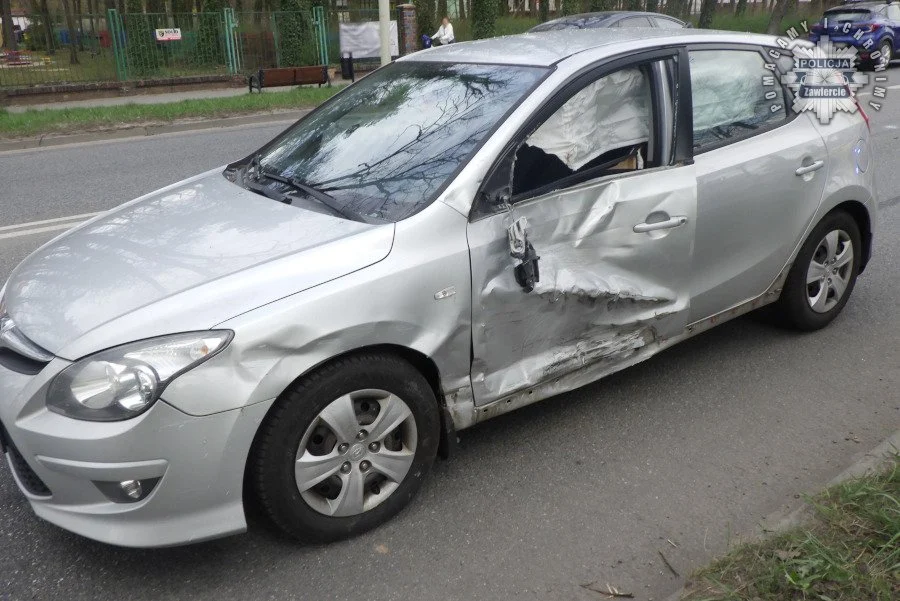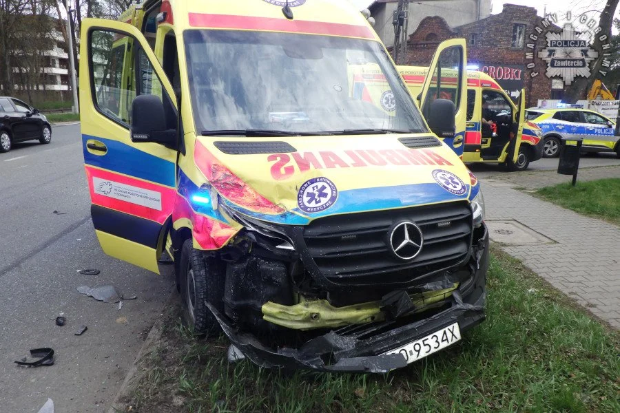 Jak ustalili funkcjonariusze z zawierciańskiej drogówki, oba pojazdy jechały od strony Kielc w kierunku Siewierza. W momencie, gdy 48-letnia kierująca hyundaiem próbowała skręcić w lewo w ulicę Smutną, została uderzona w bok przez jadącą na sygnałach karetkę.