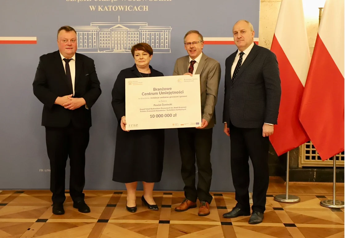 - Promesę o wartości 10 000 000 zł odebrała dyrektor Beata Szemraj z Zespołu Szkół Budowlano-Drzewnych im. Armii Krajowej w Żywcu na Branżowe Centrum Umiejętności w dziedzinie instalacje sanitarne, grzewcze i gazowe w Żywcu.