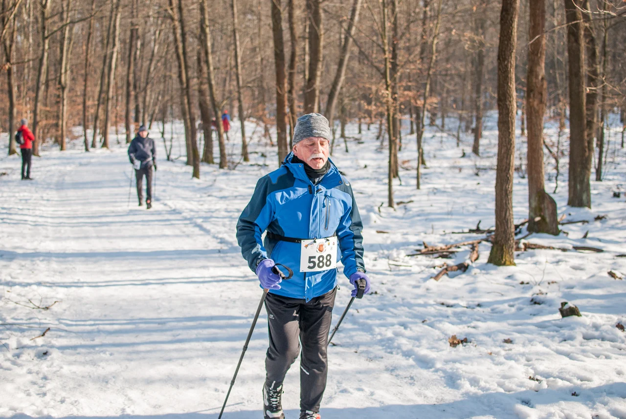 Czternasta edycja Panewnickiego Dzikiego Biegu przyciągnęła sporo uczestników. Kolorowy tłum biegaczy i zawodników startujących w kategorii nordic walking wyruszył na zimową, leśną trasę równo o godzinie 11:00 (kijkarze 5 minut po biegaczach).