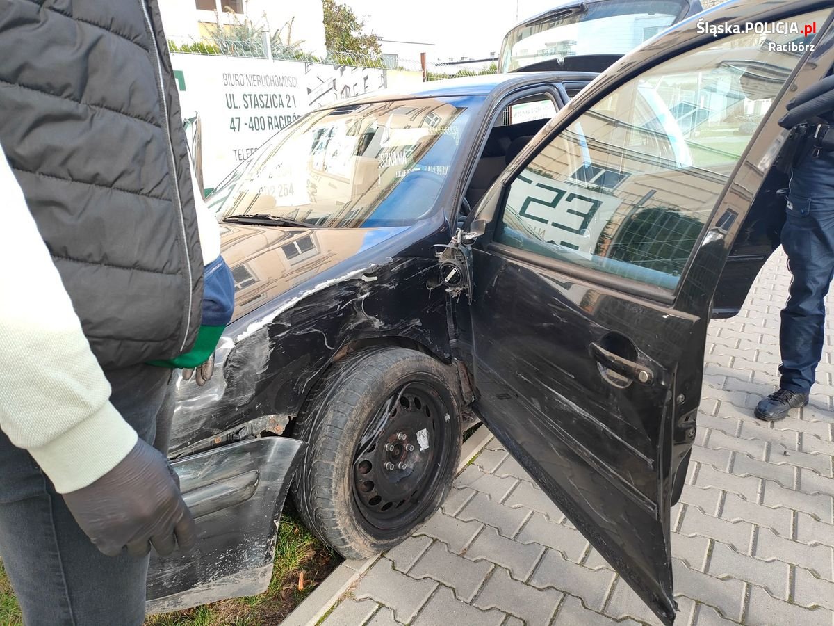 Sceny jak z filmu rozegrały się środę na drogach Raciborza. Policjanci z Wydziału Ruchu Drogowego na ulicy Fabrycznej zauważyli pojazd volkswagen golf, którego kierujący nie posiadał uprawnień do kierowania pojazdami. Policjanci zawrócili za samochodem i używając sygnałów świetlnych i dźwiękowych, próbowali go zatrzymać i skontrolować. Mężczyzna nie reagował na polecenia stróżów prawa, dodatkowo przyśpieszył i zaczął uciekać w kierunku ulicy Rybnickiej. Tam wjechał na chodnik i o włos nie doszło do tragedii, bo po chodniku poruszali się piesi. Zjechał na jezdnię i uderzył w nieoznakowany radiowóz, to go jednak nie powstrzymało i dalej próbował uciekać. Następnie uderzył w radiowóz drogówki i wtedy podjął próbę ucieczki pieszej wraz ze swoją pasażerką. Policjanci oddali strzał ostrzegawczy i po krótki pościgu pieszym zatrzymali mężczyznę oraz podróżującą z nim kobietę.