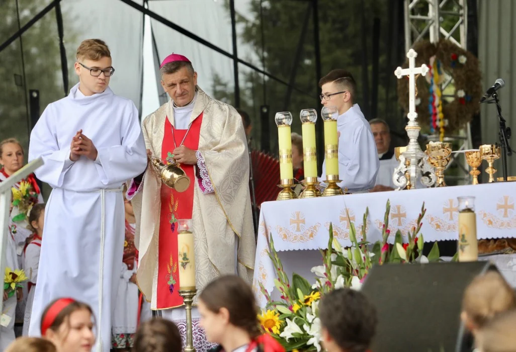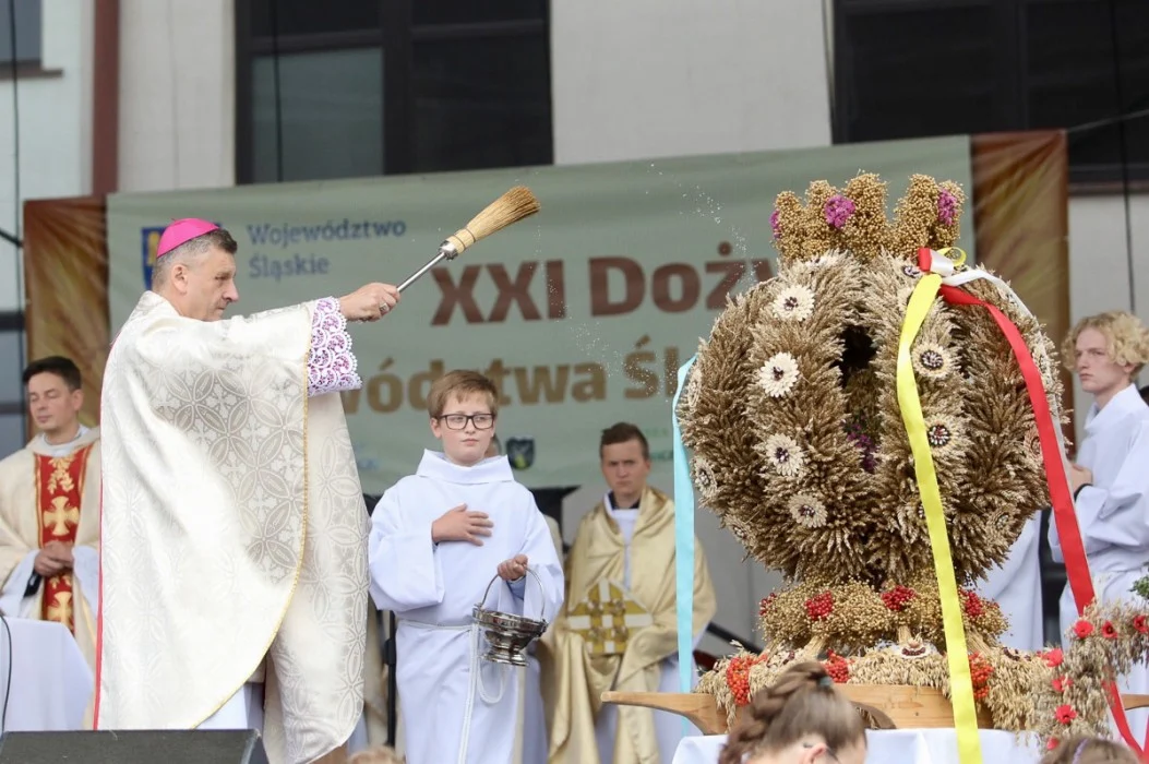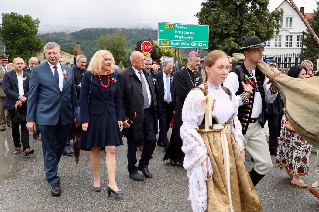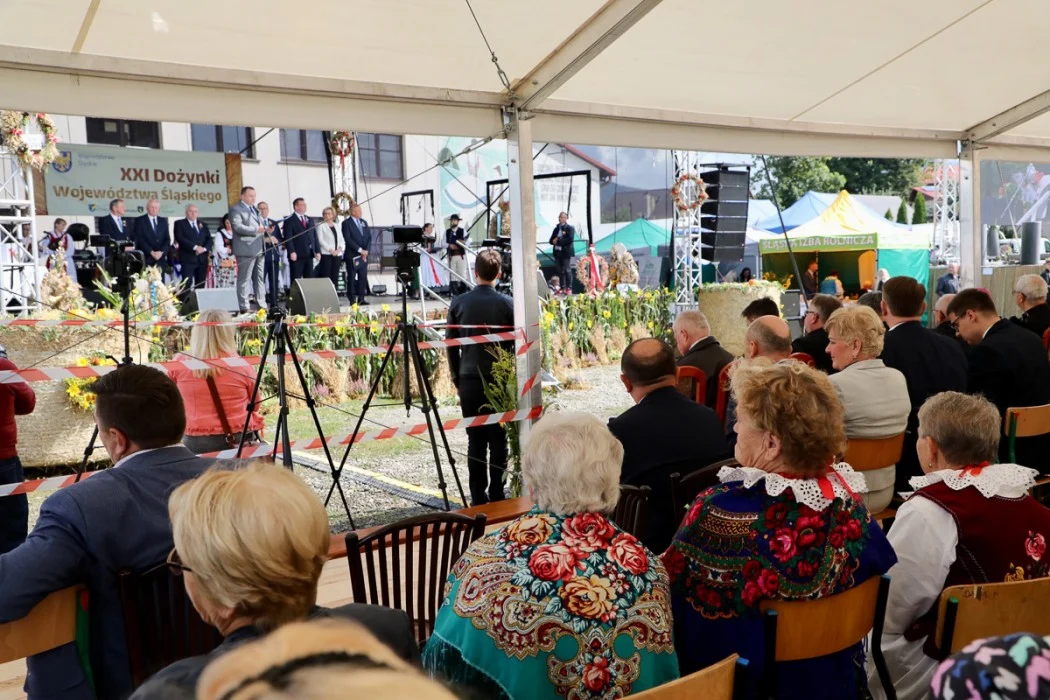 W uroczystościach uczestniczyli: marszałek województwa Jakub Chełstowski, poseł do Parlamentu Europejskiego Jadwiga Wiśniewska, przewodniczący Sejmiku, Jan Kawulok, parlamentarzyści oraz radni wojewódzcy. Kolorowy korowód przeszedł na plac przed miejscowym Urzędem Gminy, gdzie rozpoczęła się plenerowa msza święta, której towarzyszyła artystyczna oprawa przygotowana przez Fundację Braci Golec. Po zakończeniu nabożeństwa i okolicznościowych przemów, na scenie wręczono Odznaki Honorowe za Zasługi dla Województwa Śląskiego oraz odznaki Zasłużony dla Rolnictwa. Nagrody otrzymali także najlepsi hodowcy owiec, rozstrzygnięto również konkurs wieńców dożynkowych.