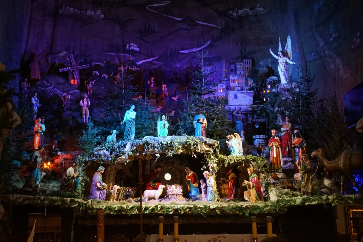 Szopka nie jest dostępna do zwiedzania w czasie mszy świętych.