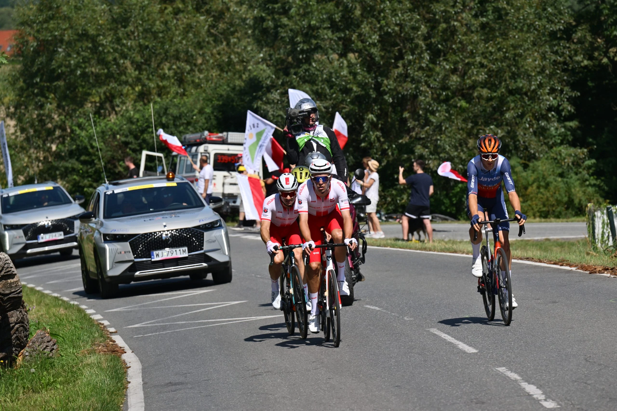 81. Tour de Pologne UCI World Tour rozpoczął się pod Halą Stulecia we Wrocławiu. Peleton wyruszył ze startu honorowego o godzinie 12.25 i spokojnie przejechał 13 kilometrów do startu ostrego w okolicach Bielan Wrocławskich. Kolarze od razu narzucili wysokie tempo, a bohaterami pierwszej ucieczki byli Polacy Szymon Sajnok (Q36,5), Norbert Banaszek i Michał Paluta (reprezentacja Polski) oraz Holender Jan Maas (Jayco-Alula). Jadący na czele peletonu zawodnicy UAE Team Emirates i Visma-Lease a Bike pędzili z ponad 50 km/h, ale mimo to ucieczka cały czas powiększała przewagę. W szczytowym momencie wynosiła ona nawet 2 minuty i 50 sekund.
