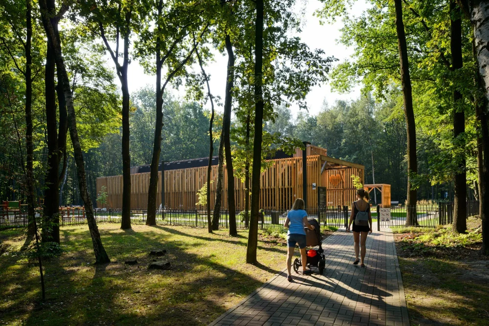 Efekt symbiozy dodatkowo potęguje układ wertykalnych elementów struktury elewacji stref inhalacyjnych, nawiązujący do charakteru otaczającego drzewostanu oraz liczneakcenty przestrzenne o organicznych formach, takie jak: oprawy oświetleniowe (latarnie), stylistyką nawiązujące do konarów drzew, jak również ogrodzenie przypominające formą, występujące na terenie parku zarośla – przekonuje Urząd Marszałkowski Województwa Śląskiego.