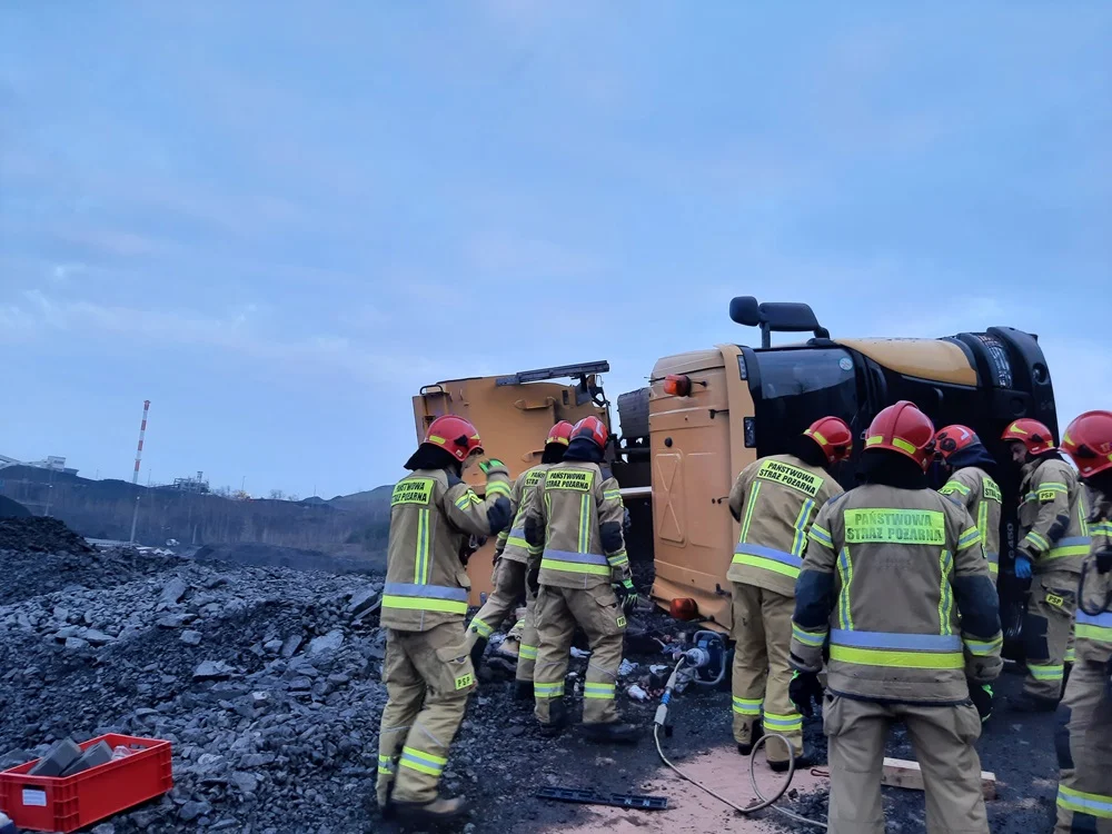 Tragiczny wypadek w Radlinie. Samochód ciężarowy na hałdzie przy KWK Marcel przygniótł mężczyznę. Niestety nie udało się go uratować.