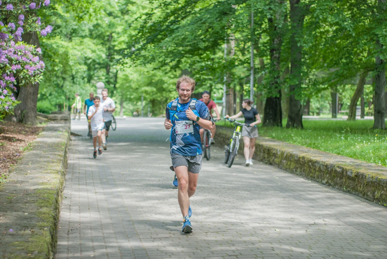 Pół godziny później, o 11:30 ruszył bieg główny, przeznaczony dla uczestników nastoletnich i dorosłych. Na starcie pojawiło się sporo osób, na które czekał dystans 5 km podzielony na dwie pętle. Trasa części z nich na pewno była dobrze znana, ponieważ co sobotę biegają nią i truchtają uczestnicy spotkań parkrun.