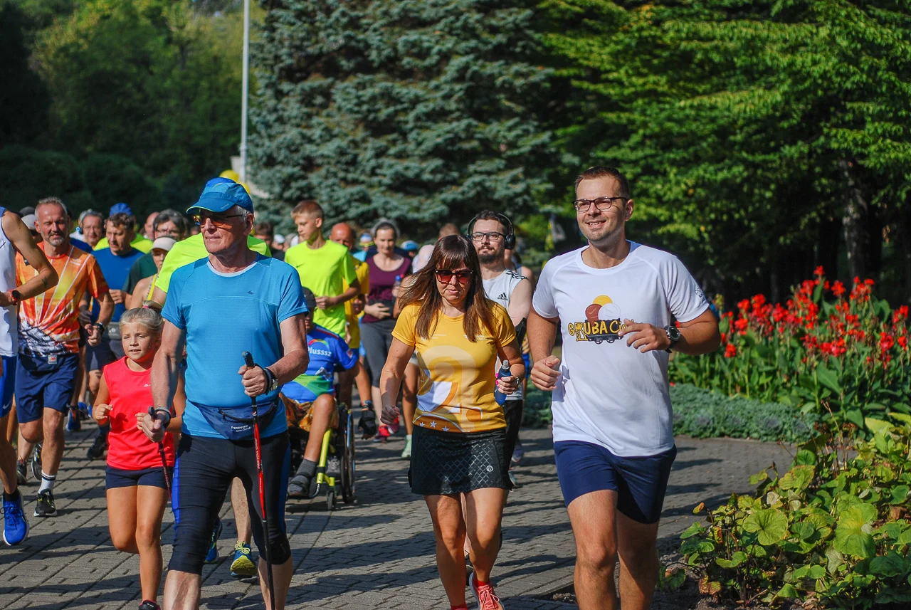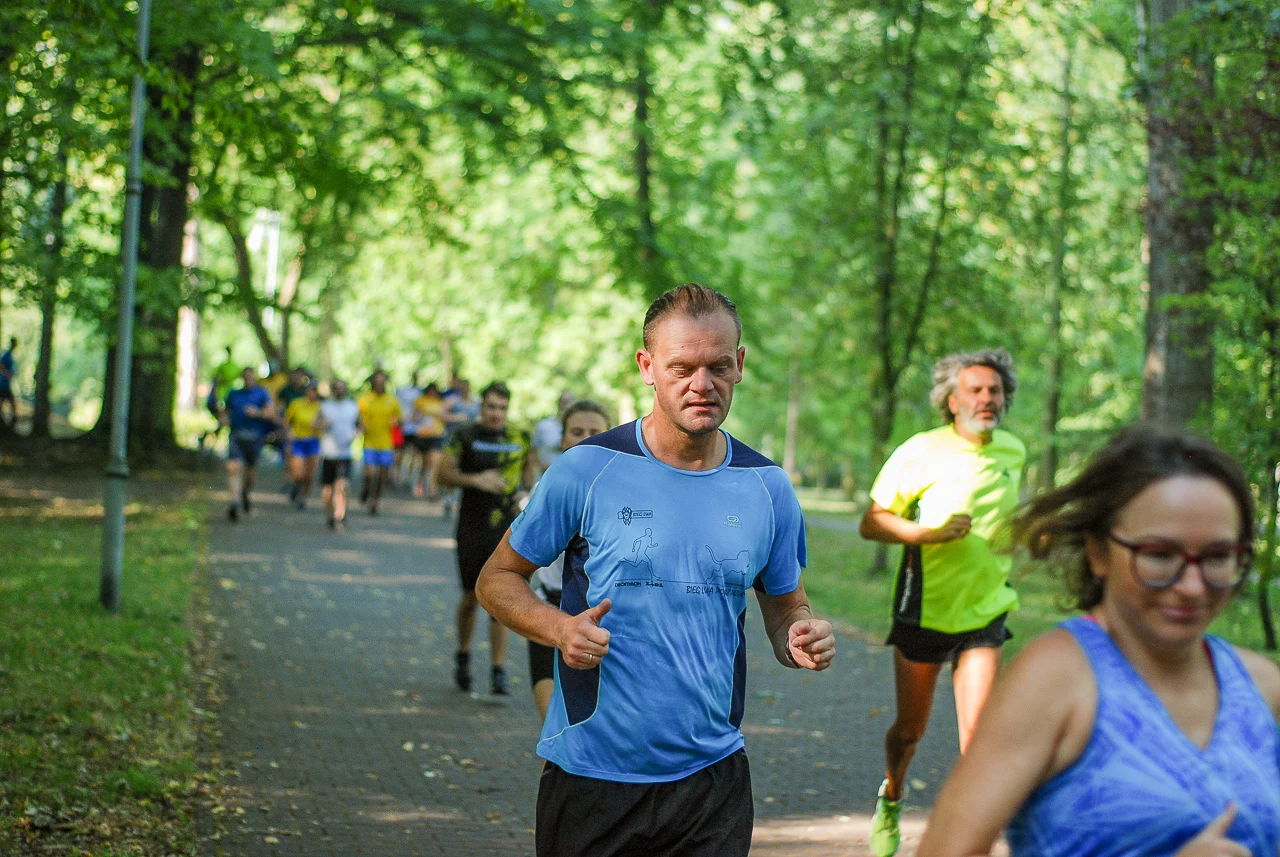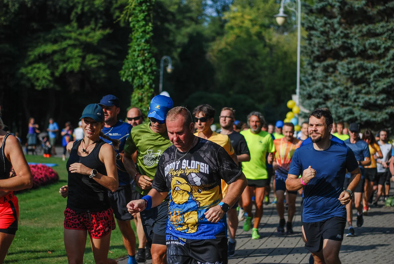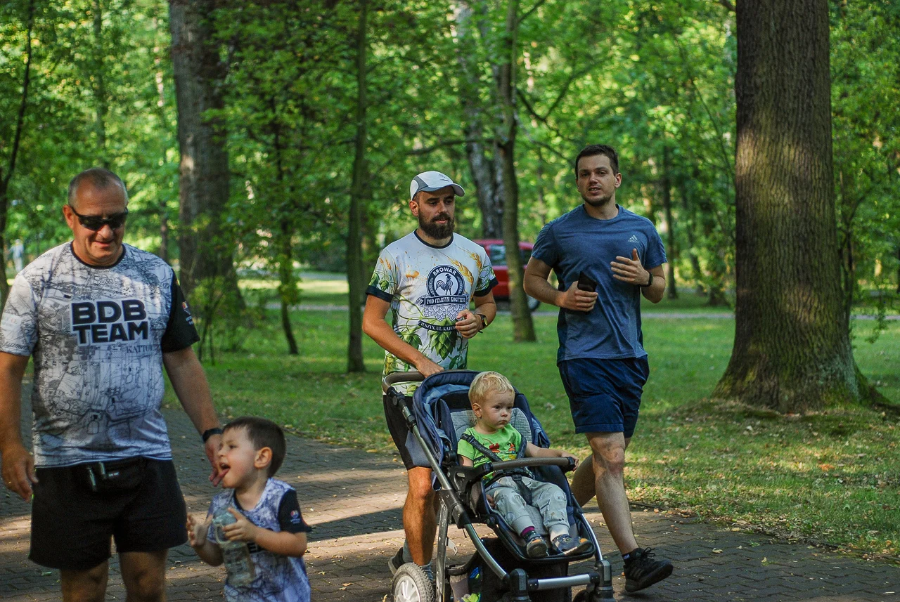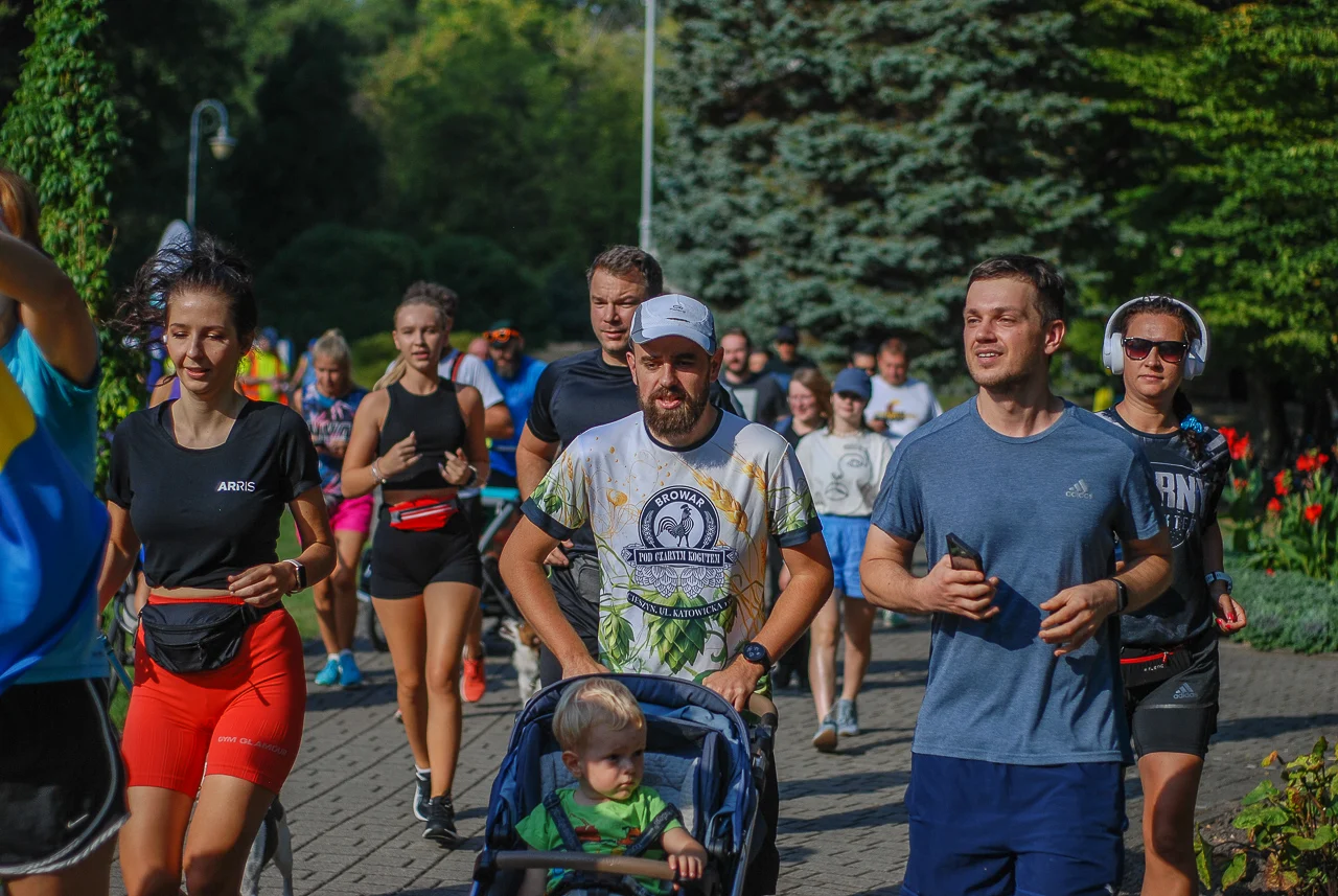 Kilkudziesięciu biegaczy i zawodników nordic walking, jak co sobotę udało się na 5 kilometrową trasę biegnącą alejkami Parku imienia Tadeusza Kościuszki. Przed głównym startem odbył się, tradycyjnie, bieg dla bajtli, a jeszcze wcześniej szybki quiz ślonskiej godki. Sprawdzano, czy zawodnicy znają takie słowa jak zoki, tasza czy batki.