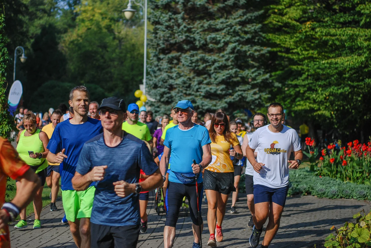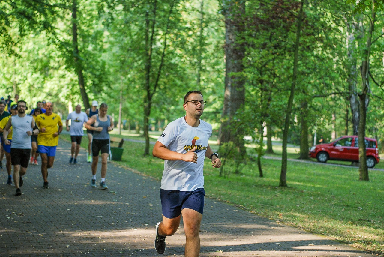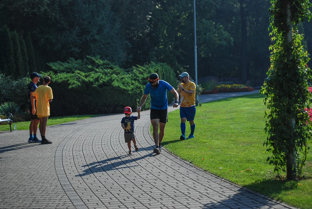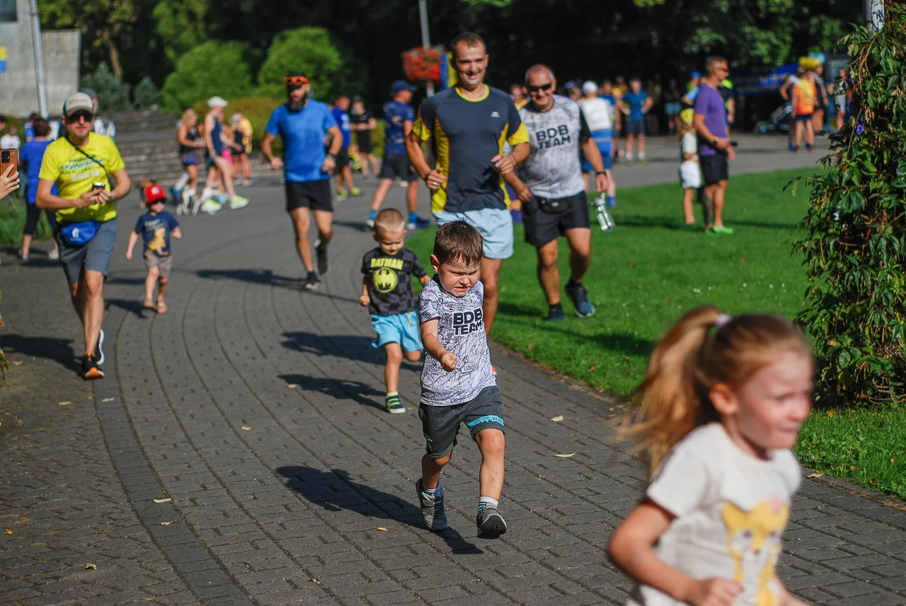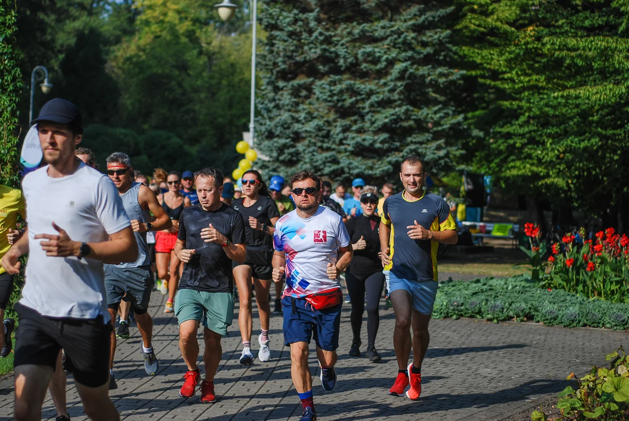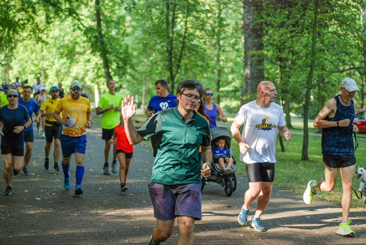 Kilkudziesięciu biegaczy i zawodników nordic walking, jak co sobotę udało się na 5 kilometrową trasę biegnącą alejkami Parku imienia Tadeusza Kościuszki. Przed głównym startem odbył się, tradycyjnie, bieg dla bajtli, a jeszcze wcześniej szybki quiz ślonskiej godki. Sprawdzano, czy zawodnicy znają takie słowa jak zoki, tasza czy batki.