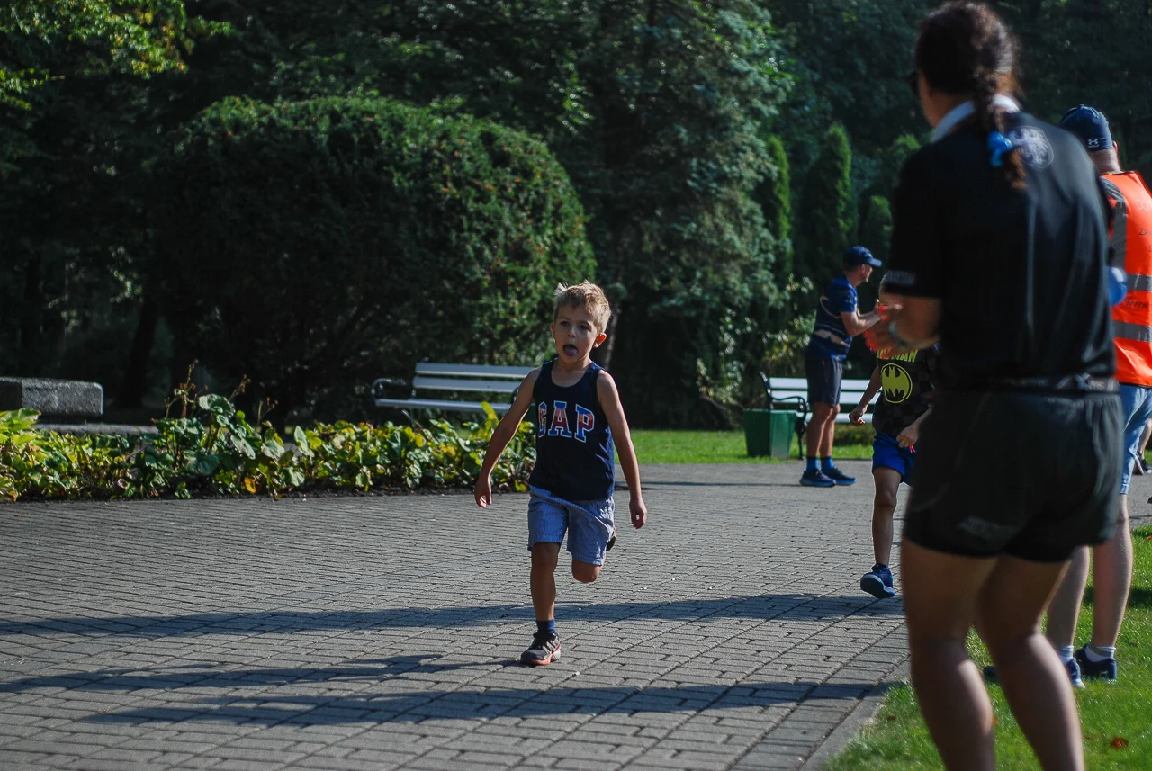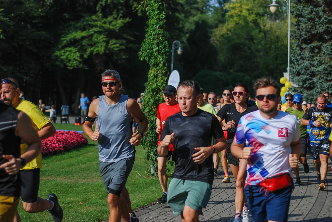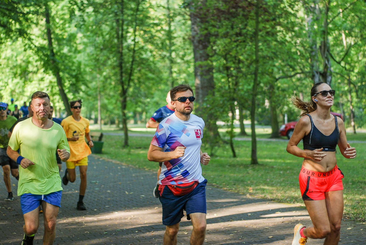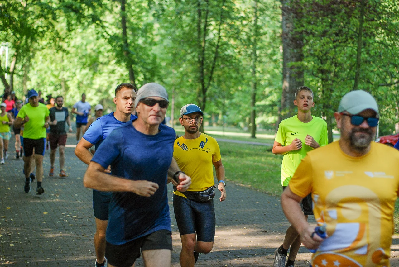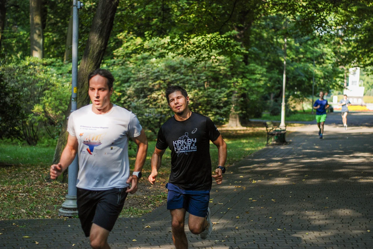 Kilkudziesięciu biegaczy i zawodników nordic walking, jak co sobotę udało się na 5 kilometrową trasę biegnącą alejkami Parku imienia Tadeusza Kościuszki. Przed głównym startem odbył się, tradycyjnie, bieg dla bajtli, a jeszcze wcześniej szybki quiz ślonskiej godki. Sprawdzano, czy zawodnicy znają takie słowa jak zoki, tasza czy batki.