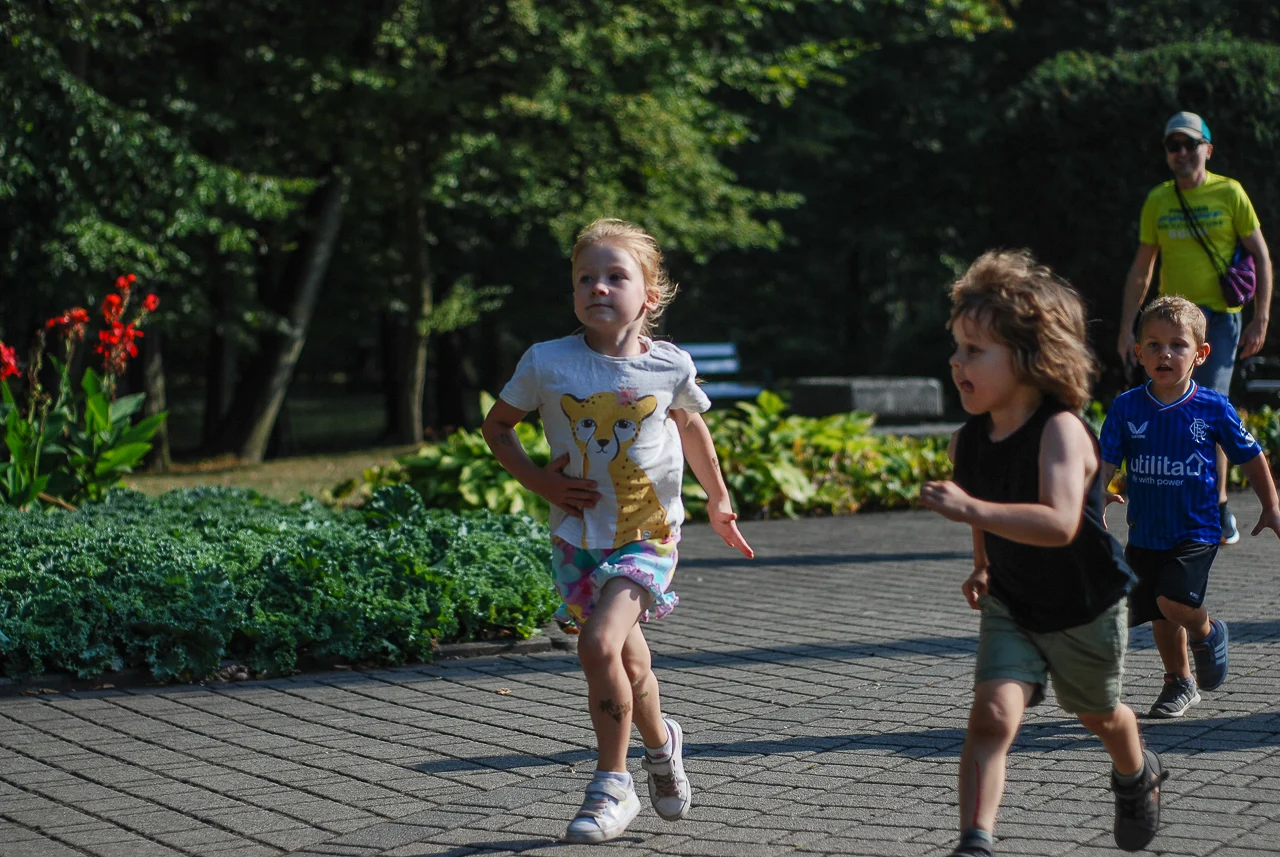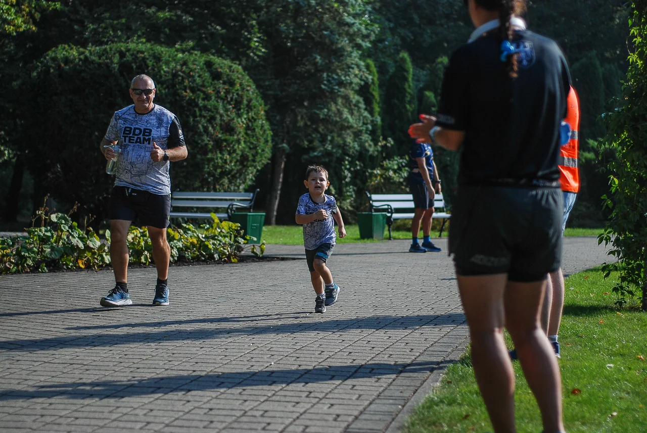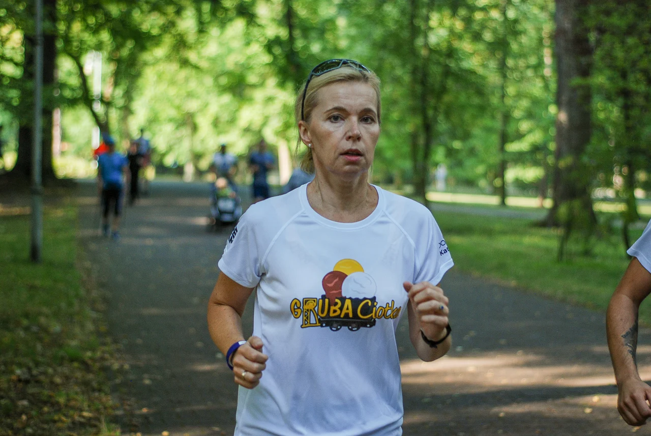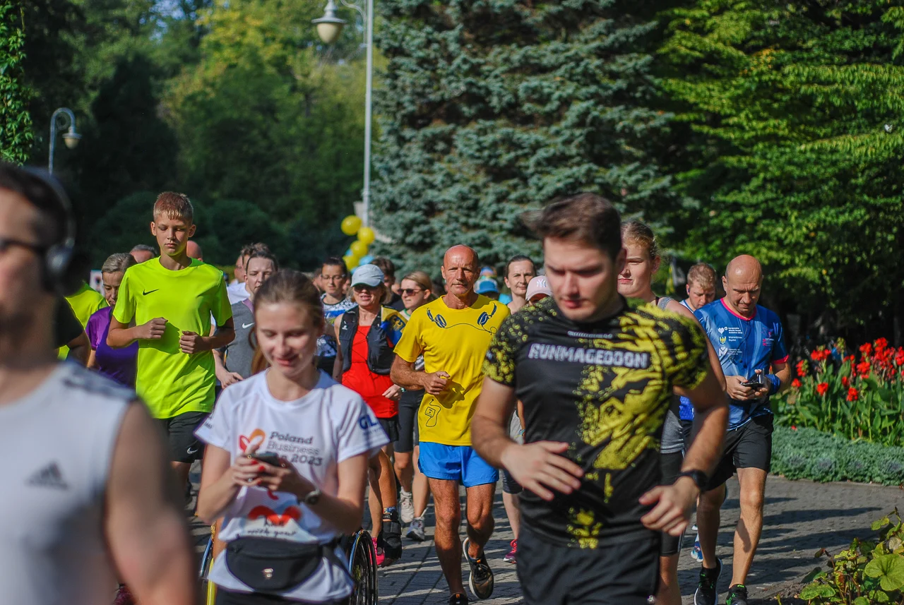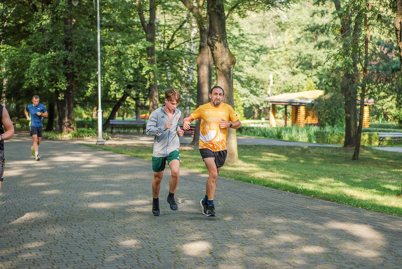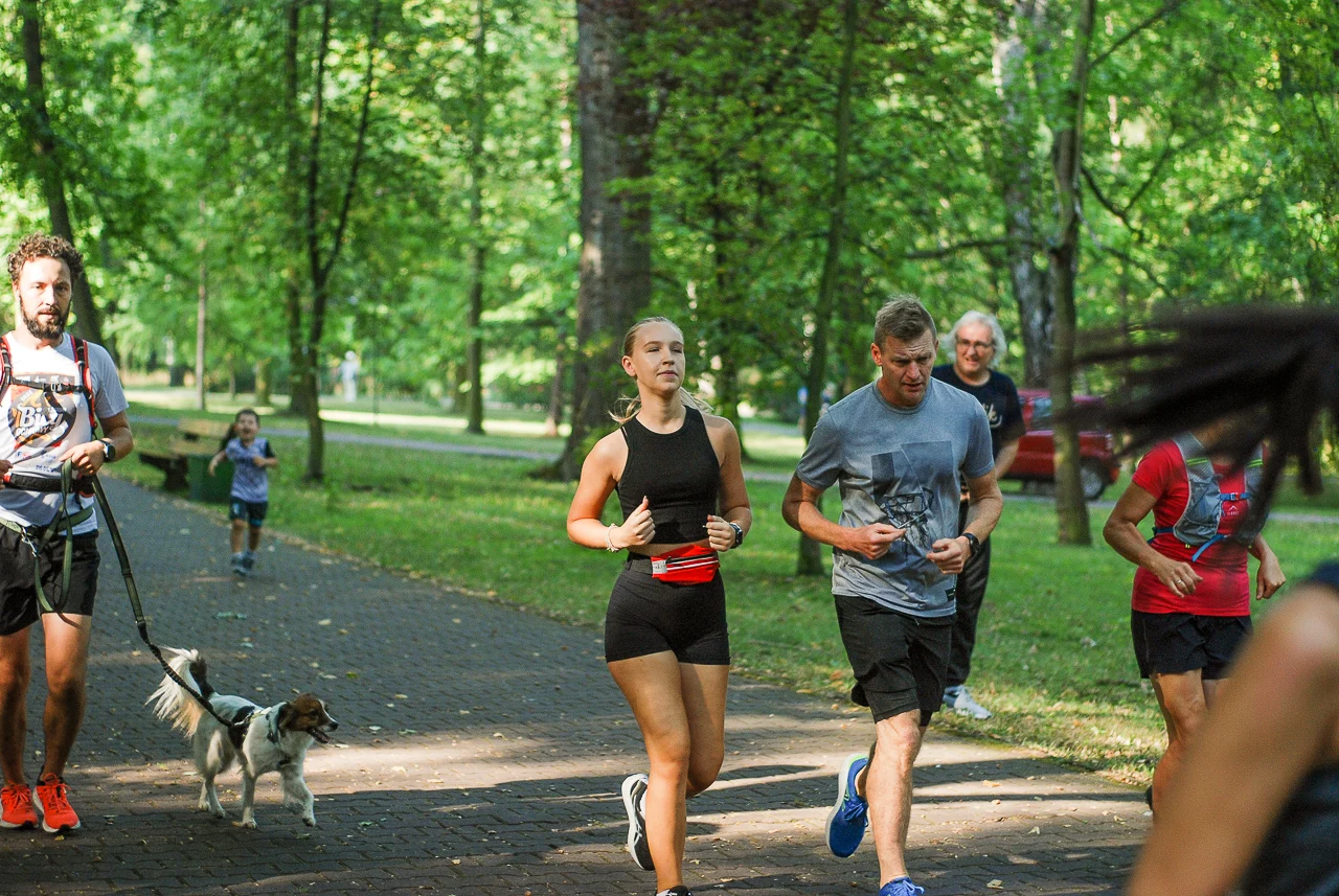 Kilkudziesięciu biegaczy i zawodników nordic walking, jak co sobotę udało się na 5 kilometrową trasę biegnącą alejkami Parku imienia Tadeusza Kościuszki. Przed głównym startem odbył się, tradycyjnie, bieg dla bajtli, a jeszcze wcześniej szybki quiz ślonskiej godki. Sprawdzano, czy zawodnicy znają takie słowa jak zoki, tasza czy batki.