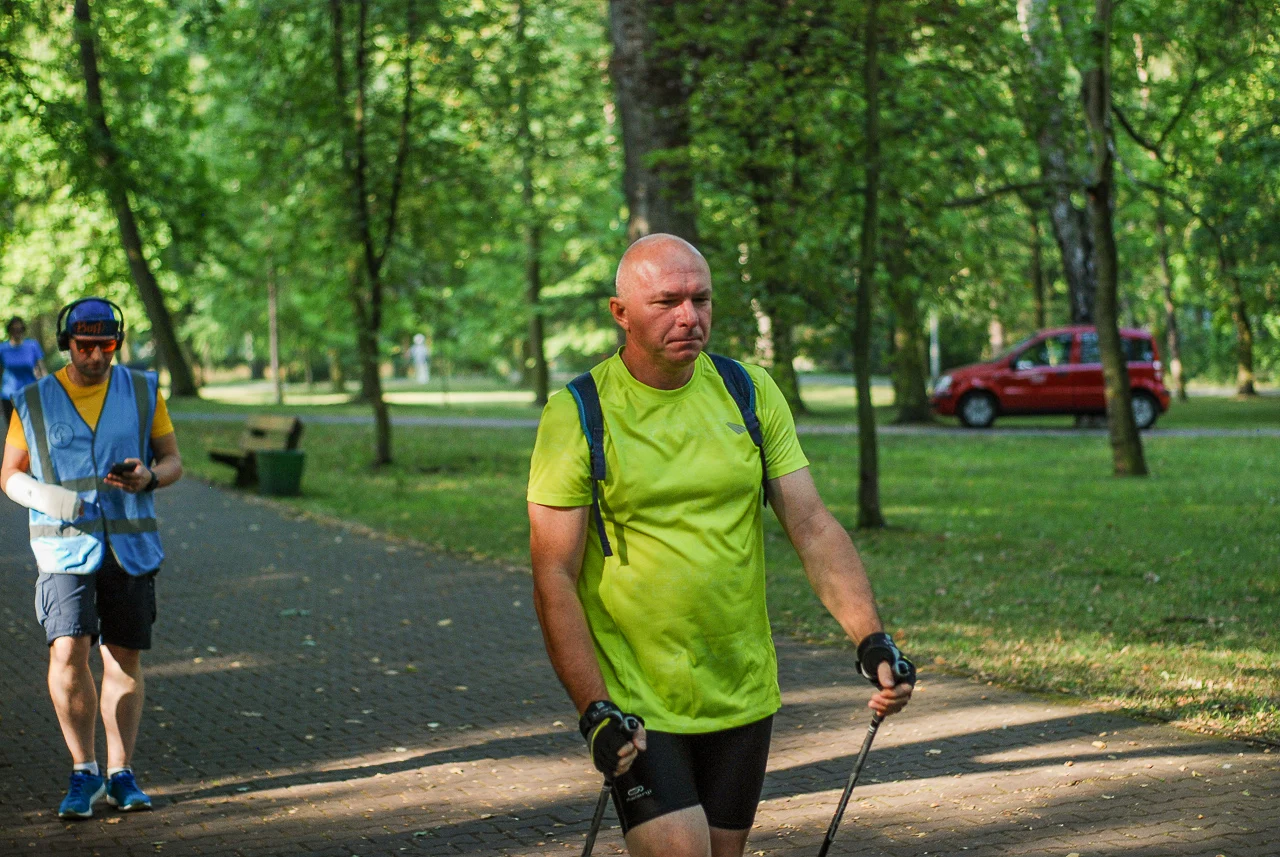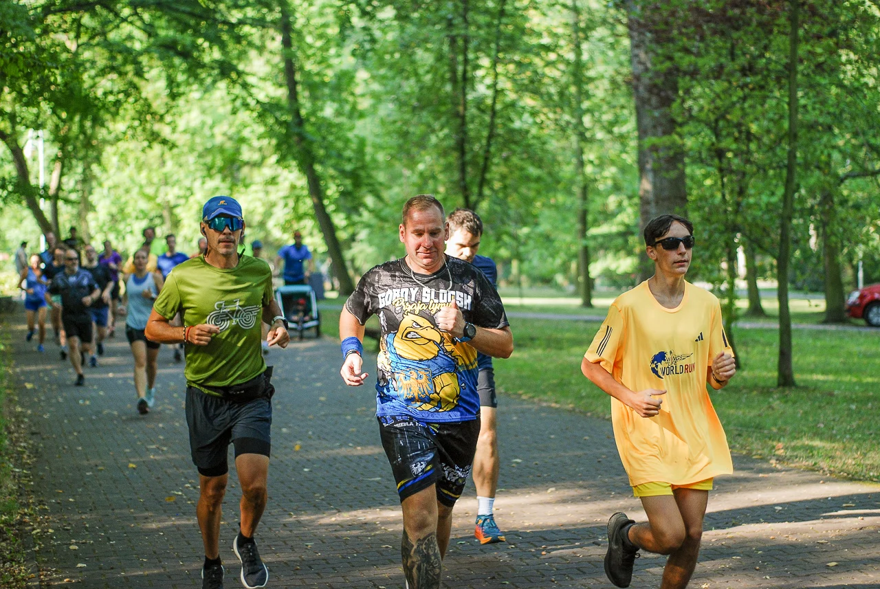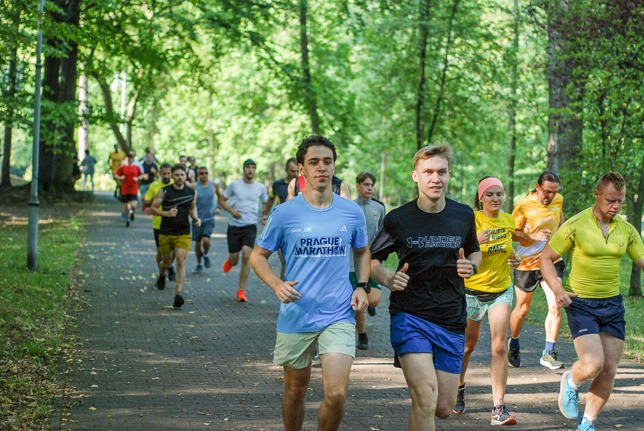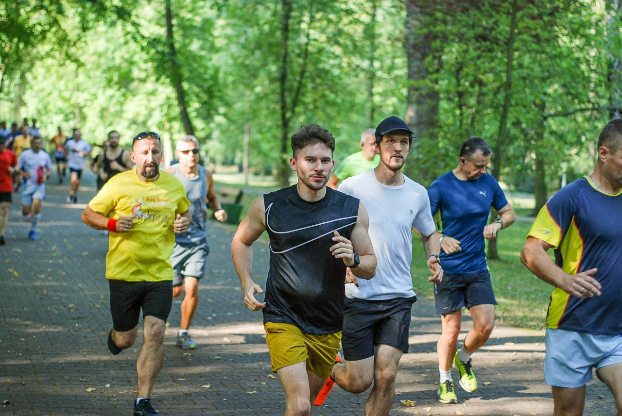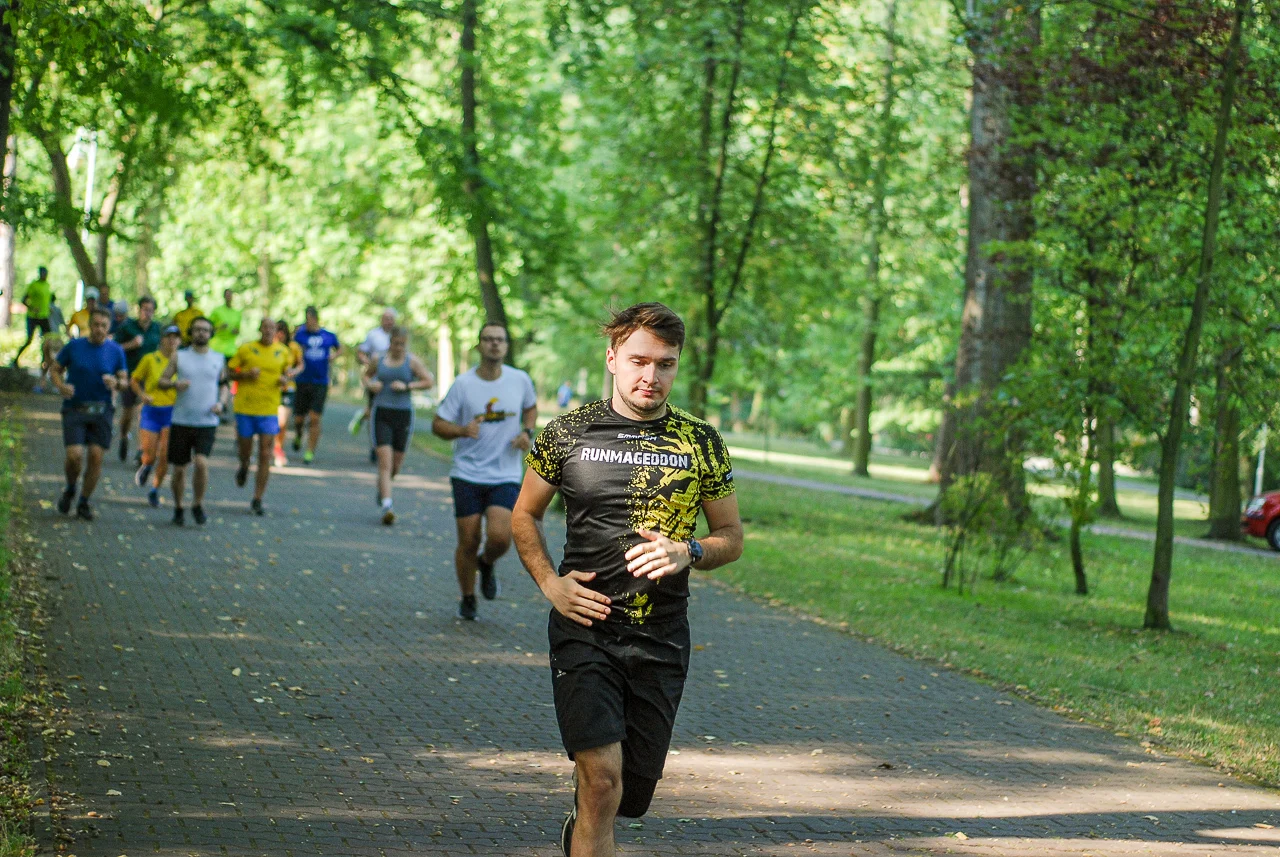 Kilkudziesięciu biegaczy i zawodników nordic walking, jak co sobotę udało się na 5 kilometrową trasę biegnącą alejkami Parku imienia Tadeusza Kościuszki. Przed głównym startem odbył się, tradycyjnie, bieg dla bajtli, a jeszcze wcześniej szybki quiz ślonskiej godki. Sprawdzano, czy zawodnicy znają takie słowa jak zoki, tasza czy batki.