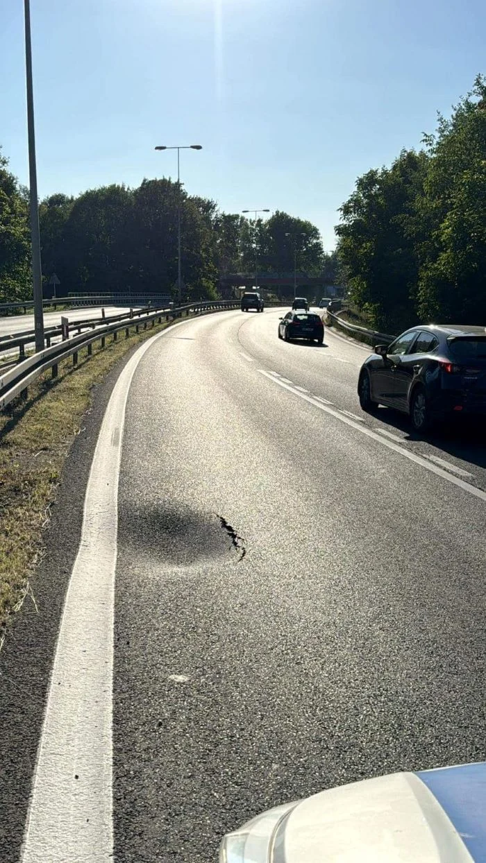 Uwaga na utrudnienia w ruchu na DK 81 w Mikołowie w kierunku Wisły. Na skraju lewego pasa jezdni powstało głębokie zapadlisko!