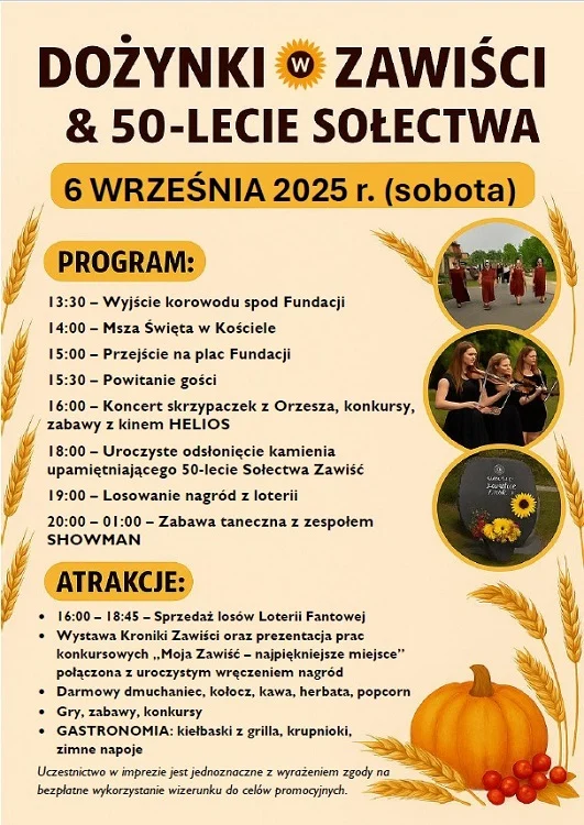 6 września mieszkańcy Zawiści spotkają się na wspólnym świętowaniu dożynek, które w tym roku będą miały wyjątkowy charakter – połączone zostaną z obchodami 50-lecia sołectwa.