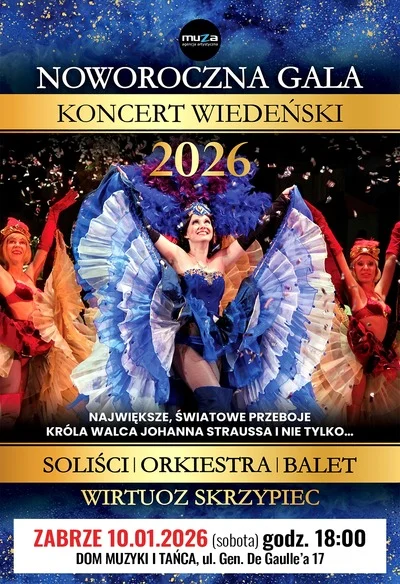 NOWOROCZNA GALA – Koncert Wiedeński to wyjątkowe muzyczne święto, które co roku zachwyca publiczność w całej Polsce. W najnowszej edycji 2026 ponownie zabrzmią największe światowe przeboje Johanna Straussa, a także najpiękniejsze arie operowe, operetkowe i musicalowe w wykonaniu wybitnych solistów, imponującej Orkiestry Symfonicznej oraz barwnych par baletowych.