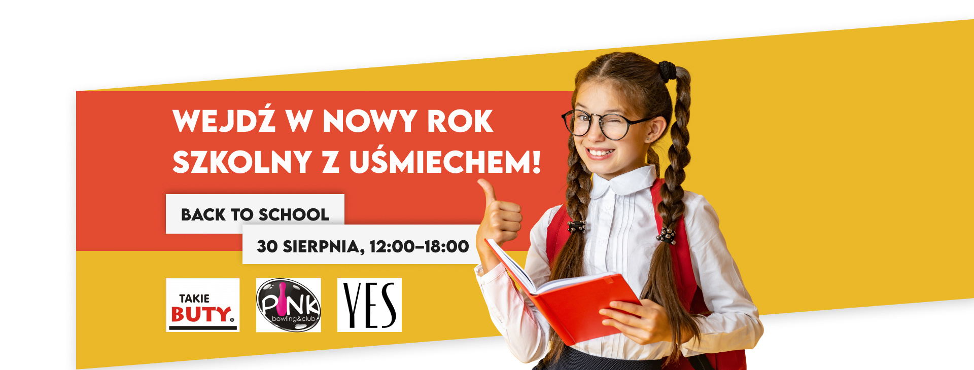 30 sierpnia od 12:00 do 18:00 żegnamy wakacje w klimacie powrotu do szkoły! Przygotujcie się na dzień pełen pozytywnej energii i szkolnych emocji!